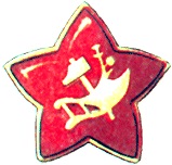 Затем отличительным знаком воинов Красной Армии стала металлическая красная звездочка с изображением плуга и молота, крепившаяся на головной убор.