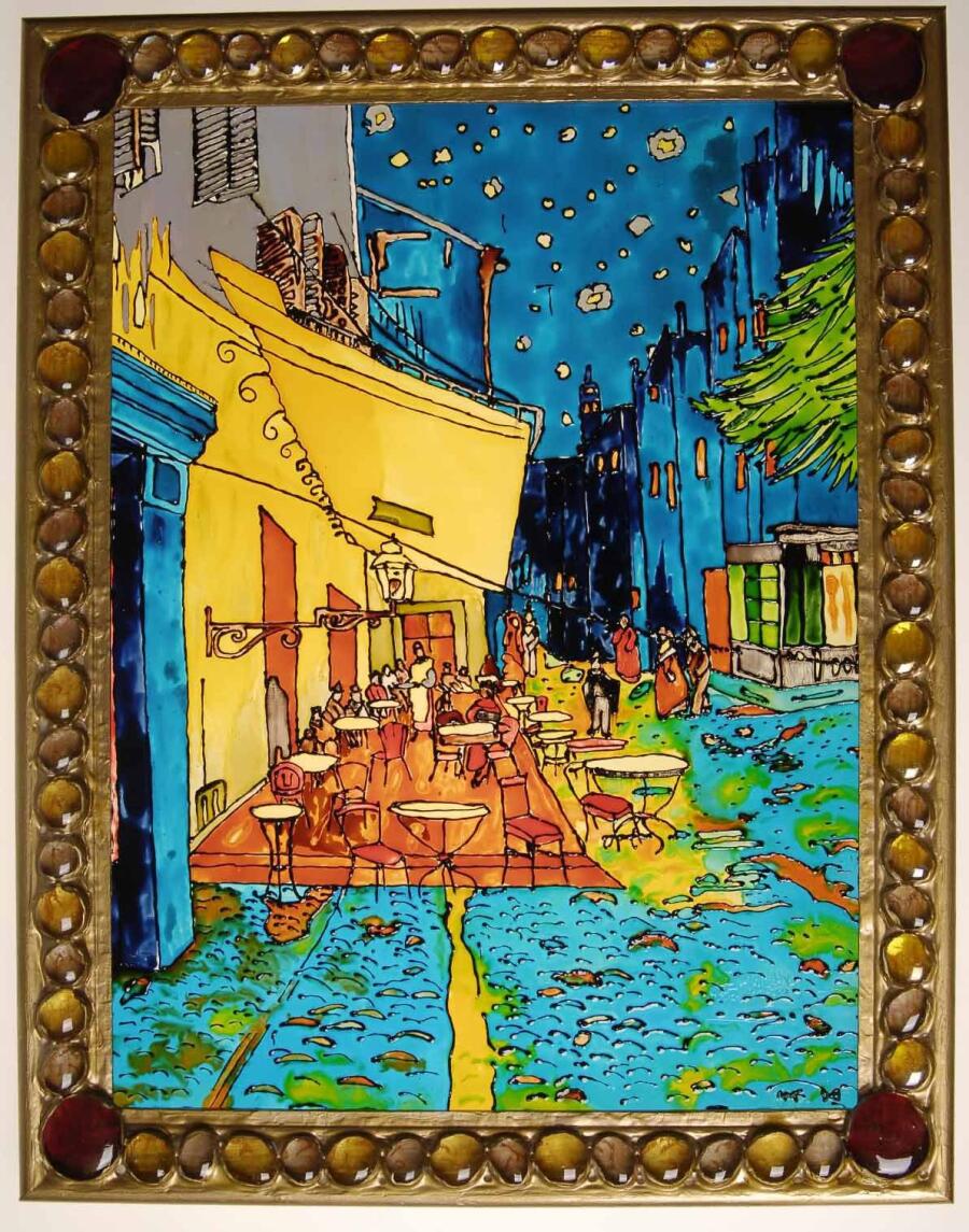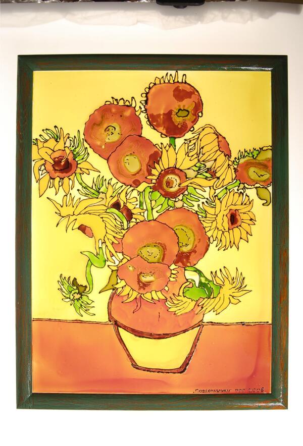 Ну, а ты гениально срисовала гениальные картины. Подсолнухи - хороши, а "Кафе" вообще - "это - что- то особенного!"