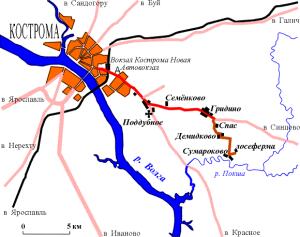 И... Лосиное молоко - это просто здорово. Вот только как добраться до этой фермы? Она же не в самой Костроме. Помню, как-то прикидывал - это не один десяток километров на северо-запад, в сторону Ярославля. И дорога там тупиковая, выхода на соседнюю область нет. Значит, чтобы дальше двигаться на Ярославль, Иваново или Вологду, всё равно надо будет обратно к Костроме вернуться. Или я что-то путаю?