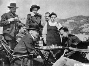 И вообще, играл ли Ленин с Зиновием, неизвестно. Прилагаю фото - на нем Ленин на Капри в 1908 году играет с Александром Богдановым, а Зиновий стоит позади всех. (А на том, что Вы поначалу поставили в статью - Зиновий заретуширован вообще.)
