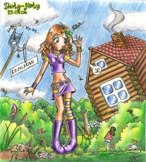 Александр Сорокин, это автор рисунка, моя хорошая знакомая, в роли городской девушки, непривычной к деревенской жизни и поэтому испытывающей от окружающей обстановки лёгкий шок.