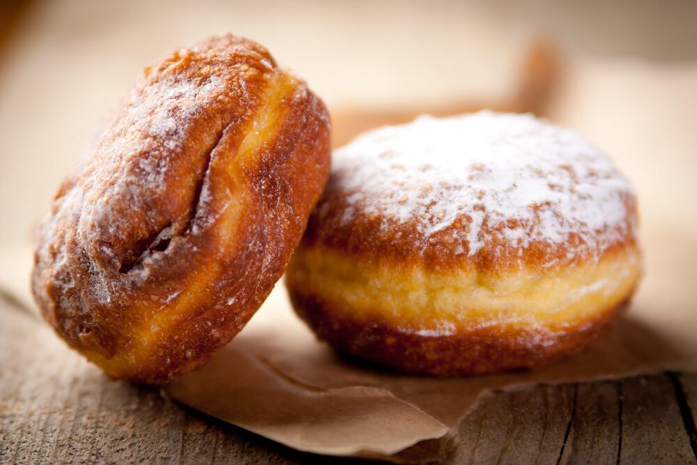 Ингредиенты (кроме сахарной пудры) смешать, скатать небольшие шарики, опустить в кастрюлю с кипящим маслом и жарить до образования румяной корочки. Готовые колобки посыпать сахарной пудрой.