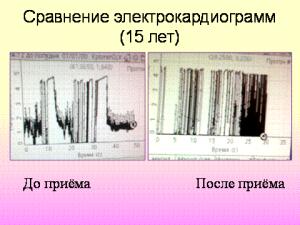 2 года назад я загорелась идеей исследовать влияние энерготоников на организм человека.Работаю педагогом, в гимназии. Предложила учащейся писать этот научный проект. Тема так и звучала - "Влияние энергетических напитков на организм человека". Для формирования экспериментальной части работы мы использовали современное интерактивное оборудование xplorer GLX. В эксперименте участвовали испытуемые разных возрастов. Ну и что же мы получили. После приёма энергетика у всех повысилось артериальное давление.Значение частоты сердечных сокращений также изменилось - оно значительно увеличилось. Измерили мы также и уровень pH (кислотность) энерготоников различных торговых марок. Среда оказалась среднекислой, рН в области 3,3 - 3,8. Интересно, что даже температура тела несколько изменилась.Упала на 1 - 1,5 градуса. Бесспорно, даже эти показатели свидетельствуют о том, что энергетики оказывают влияние на состояние сердечно - сосудистой, пищеварительной, ну и нервной системы (кофеин, таурин).Сам энергетик, как таковой, источником энергии для организма не является, а просто использует резервные ресурсы самого организма. А вот гляньте-ка электрокардиограммы до и после приёма энергетика: