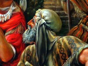Паоло Веронезе решил убрать лишних женщин, оставил верблюдов, город поодаль и Ревекку. Слуга Элиэзера передает Ревекке (которой уже далеко за 20) подарки свата. Нет момента выбора, момента просветления у Элиэзера, это уже в прошлом, за рамками картины.