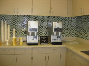 Что представляет собой этот зал: он имеет кофейную комнату, где вы можете бесплатно попить кофе, там стоят автопоилки, телевизоры, удобные кресла с пуфиками для ног. В зале дежурит волонтер. На стене зала находится огромный электронный дисплей. У волонтера вы получаете пейджер и номер кода вашего родственника.
