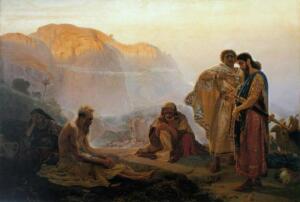 До того, как Илья Ефимович «заболел» бурлацкой темой, он готовился представить на выпускной академической выставке картину на библейский сюжет «Иов и его друзья». Картина эта уже была закончена. В 1869 году
