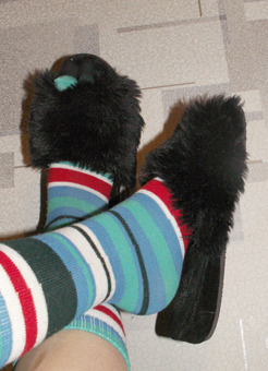 Ирина Маркович, мои -- смешные. Наверное сфотографирую попозже и вывешу: чёрные шлёпки, но верх из чёрного искусственного меха. Но мне безумно нравятся, потому что мягкие, лёгкие, удобные, не слетают, но легко одеваются, и внешний вид мне по душе!