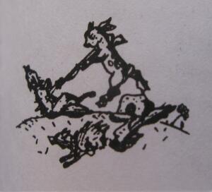 А вот тут очень любопытные картинки из оригинала (авторства Жукова). Заяц в штыковом бою и Ваня в гимнастерке.