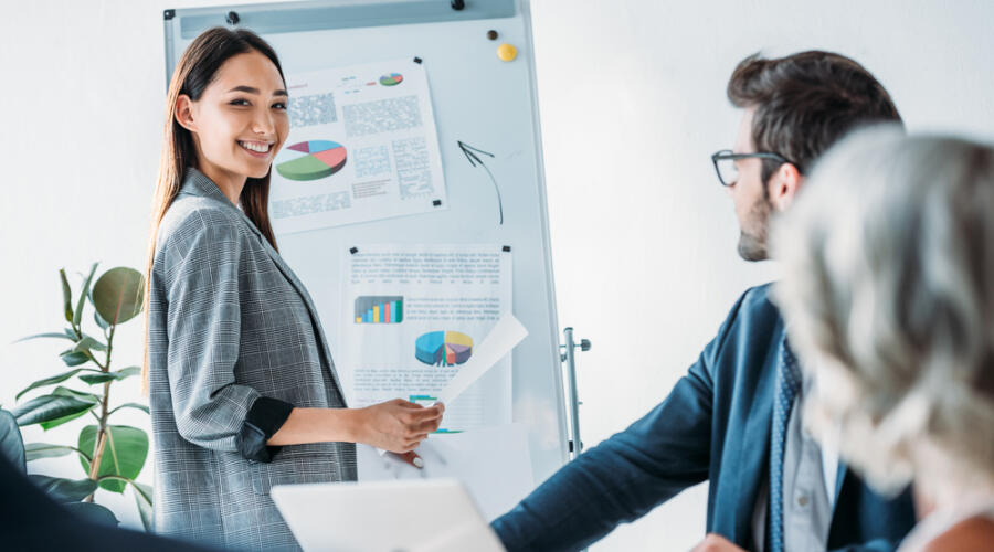 Если вы стоите спиной или боком, то вас хуже видно, хуже слышно и аудитория воспринимает ваше поведение как неуважительное. Многие спикеры, используя слайдовые презентации, вероятно, помнят об этом, поэтому разворачиваются к экрану и направляют все свое внимание на него, а не на людей.