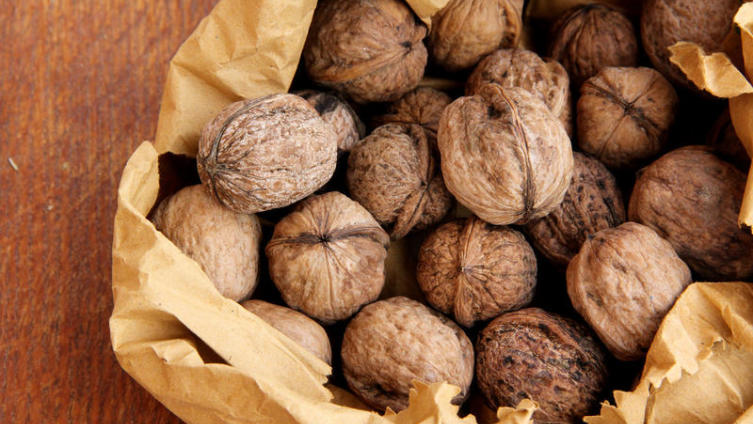 Грецкие орехи очень питательны. Два-три десятка их удовлетворяют суточную потребность человека в жирах. Царский орех — природный элексир бодрости: содержащиеся в нём витамины группы В избавляют организм от пиравиноградной кислоты, вызывающей усталость.
