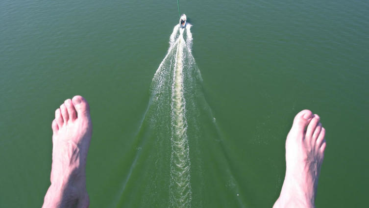 Катер останавливался, ждал, пока человек почти уже вскарабкается обратно, и, не дожидаясь сего момента, вырывался вперед. Однажды я чуть было не соскользнула, но мне удалось подтянуться и «закрепиться» на своей позиции. Вскоре меня осенило — если не сопротивляться, а наклоняться вслед за катером, то устойчивость резко повышается. Больше ничто не могло выбить меня «из седла».