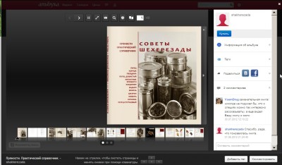 Ещё один большой минус в целом — нельзя готовую альбуку сохранить на компьютере. Можно вставить ссылку в социальные сети ВКонтакте и Facebook, можно вставить код в блоги (вставляла — тоже кривовато получилось), а как сохранить на компьютер — я так и не нашла, жаль.
