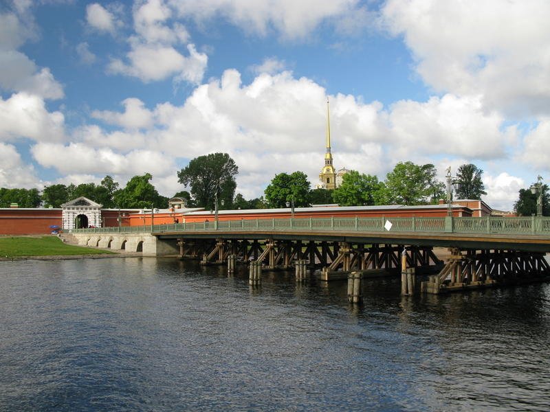 …Да, совсем забыл! В Питере до сих пор сохранились даже деревянные мосты. Например, мосты Петропавловской крепости. Иоанновский мост, по которому можно попасть в Петропавловку от Кировского проспекта. Время от времени на нем заменяют доски настила. Хоть туда почти никто не въезжает на автомобилях, но в крепость и из крепости всегда такой поток народа, что доски стираются очень быстро…