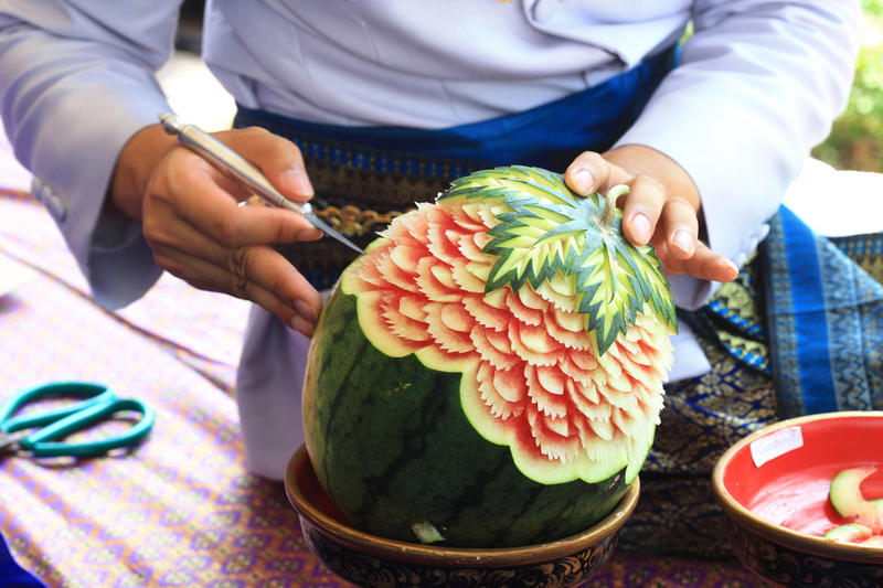 Что это? Карвингом (вырезанием) можно заниматься по любым поверхностям, но сейчас поговорим о наиболее доступном и вкусном материале — овощах и фруктах.