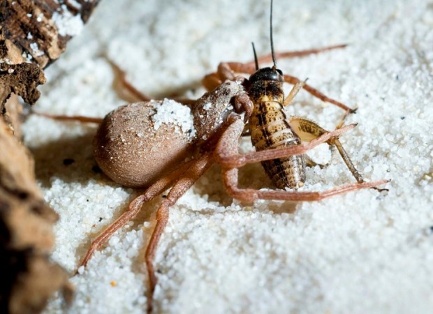 Другой паук — шестиглазый, песочный, по-научному — сикариус, что в переводе с латыни означает «убийца», имеет довольно зловещую репутацию. Длина его тела всего 5−8 мм, окраска варьирует в зависимости от цвета песка — от желтовато-коричневой до красновато-коричневой, живёт он около 15 лет (кстати, средняя продолжительность жизни пауков 3 года).