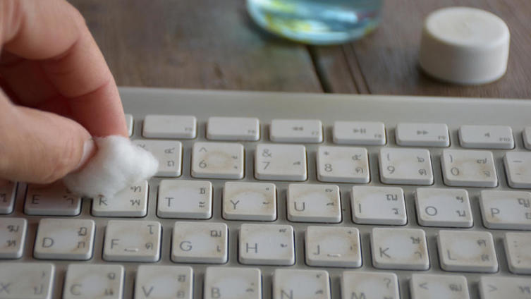 4. Если над «печатной машинкой» никто не ест и «клава» не такая грязная, то следует обойтись специальной салфеткой, ватным диском или пылесосом.