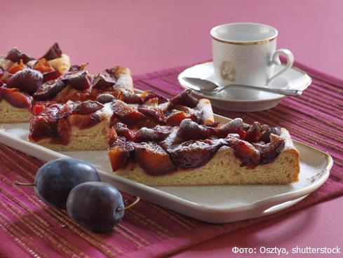 Приготовление. Замесить дрожжевое тесто и дать ему подняться. Когда тесто в два раза увеличится в объеме, раскатать его в прямоугольный пласт толщиной 0,5 см. Тесто покрыть пюре из чернослива и свернуть в рулет, начиная с покрытого начинкой конца. Переложить штрудель на смазанный жиром противень и дать ему расстояться, после чего смазать растворенным в воде сахаром. Выпекать 30 минут при температуре 195 градусов.