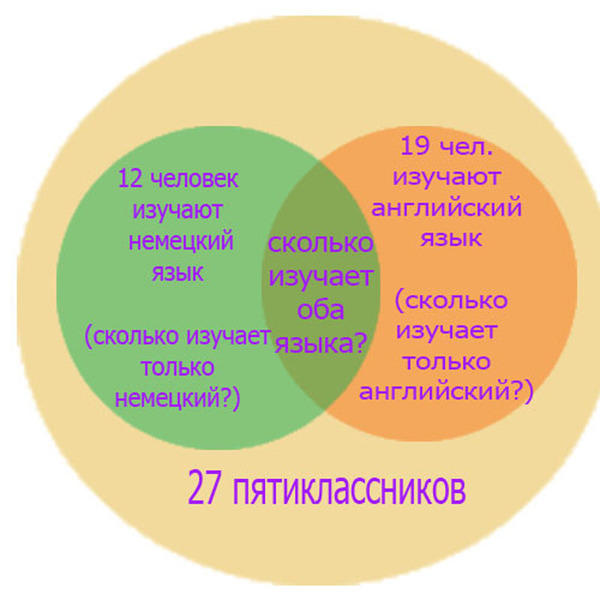 При этом первый вопрос задачи намекает в целом на путь к решению этой задачи, сообщая, что некоторые школьники изучают оба языка, и в этом случае использование схемы также упрощает понимание задачи детьми.