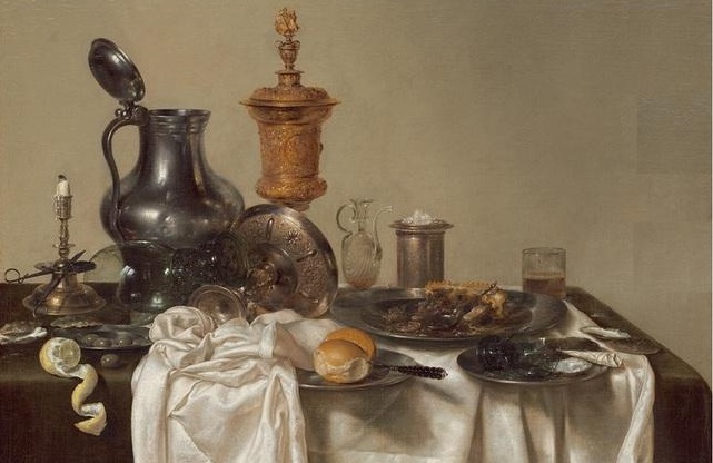 Картины нидерландского художника Виллема Класа Хеда — натюрморты — поражают красочностью и разнообразием. Одна из таких картин — с остатками пиршества, с недопитым стаканом вина, с разбитым бокалом, с растерзанным пирогом.