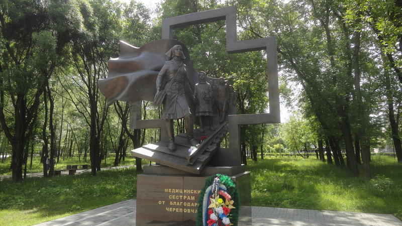 В канун 70-летия Победы, 5 мая 2015 г., в привокзальном сквере Череповца был открыт памятник медицинским сестрам. Идея его установки исходила от коллектива учащихся и преподавателей местного медицинского колледжа имени Н. М. Амосова, на краткосрочных курсах предшественницы которого — фельдшерско-акушерской школы, только за первые два года войны из недавних череповецких школьниц было подготовлено 178 фронтовых и госпитальных медсестер.