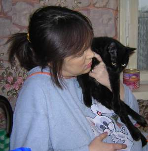 А еще вот... кошку которую я держу на руках, на фото, мы приютили, но перед этим маленький котенок рвался к нам в квартиру. Я ее не пускала. Унесла в другой подьед, но через день она опять была у меня под дверью. Я опять унесла её. У нас уже было две кошки и собака. А тут прихожу домой, а муж смеётся. Мама с прибавлением тебя в нашем семействе. Что такое? Оказывается она прошмыгнула таки в квартиру, и залезла между старыми кошками. И спряталась между ними. Слилась с другой моей черной кошкой. А через месяц мы выиграли в Русское лото. Просто случай купили. Сама не знаю зачем, и кошка эта тут же залезла на стол и улеглась на билет. Я еще посмеялась, что вроде как прибыльный билет наверное. Ведь есть поверье что кошка в дом счастье приносит. Вот и получилось что Фаня мне прибыль и принесла. Пусть небольшой но выигрышь был.