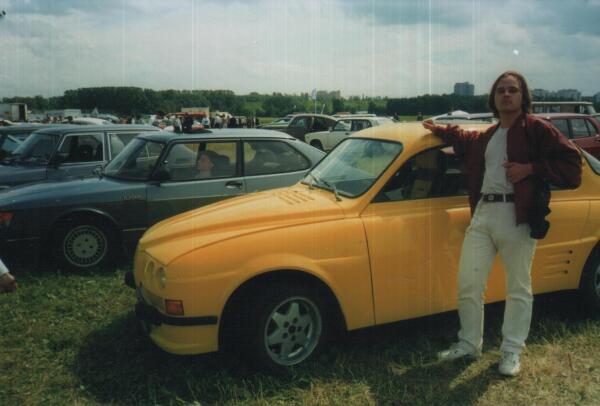 Сергей Дмитриев, в начале 90-х к на хлынул поток разношёрстных иномарок из Европы. Это было связано с тем, что наш воинский контингент выводился из Германии. Как раз в то время рухнула берлинская стена и восточным немцам позволили обменять весь налик на бундесмарки. Это же было позволено и нашим военным, правда по несколько иному курсу, но всё же на выгодных условиях. Военные стремились привезти домой что-то стоящее - видик, холодильник, желательно машину. У нас одно время весь район был заставлен Вартбургами - какая-никакая, а иномарка. Но на новое авто всё же мало у кого было. Народ принялся шариться по рынкам подержанных машин. Естественно, практичные немцы постарались сбыть с рук всю заваль. А чтобы покупали охотнее, они обклеили свой товар дешёвыми молдингами, стикерами, поставили самые попсовые диски Borbet. Так что типичный образ иномарки в глазах нашего обывателя выглядел так - антикрыло, напоминающее хвостовое оперение Ил-62, надпись типа SUPER во всю боковину, локеры на крыльях, дополнительные фары... Когда мне в руки попались немецкие автокаталоги и я увидел там на фото иномарки в обычном серийном исполнении, они мне показались какими-то простецкими, "голыми". Неинтересными.