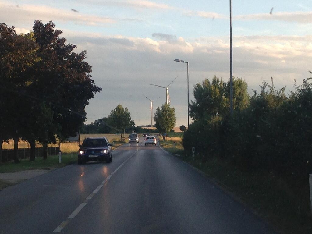 До Вены нас поведут, скорее всего, узкими, но прелестными дорогами. Вид — потрясающий: пасторали с нескончаемыми ветряками. Цветовая гамма — жёлтый с зелёным, накрытый сверху голубым небом. Невысокие горы, скорее — холмы, на горизонте. И впереди — Вена.