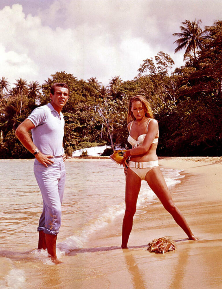 Упоминание про загар актрисы явно не было случайным, поскольку «Доктор Ноу» снимался на любимом острове Йена Флеминга — Ямайке, где у создателя Бонда была собственная усадьба, и побывав там, Урсула Андресс не могла не приобрести чудесный загар.