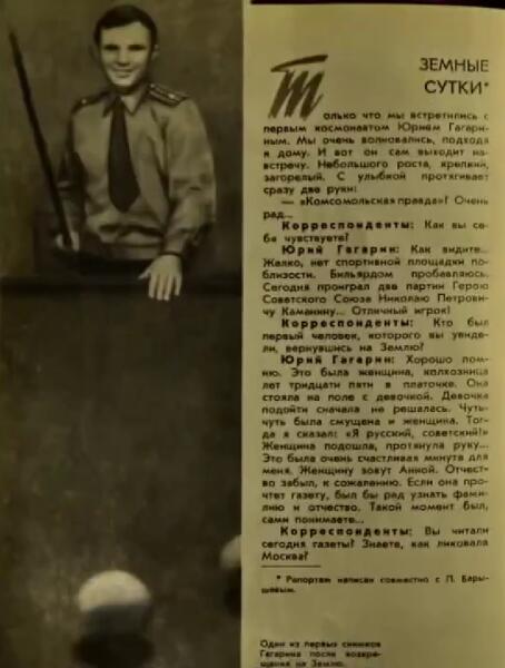В 1960 году вышла книга очерков Василия Пескова. А в 1961 Юрий Гагарин полетел в космос. И именно Песков первым взял интервью у космонавта. Сам Василий Михайлович вспоминал об этом так: