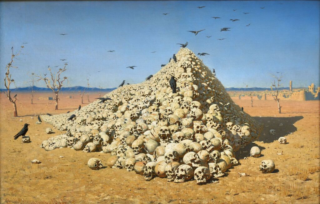 В. Верещагин — один из немногих художников, которой четко писал, что видел, ничего не прибавляя и не убавляя. Его картины проникнуты чудовищной правдой войны. Часто шокируя зрителя, мастер стремился привить людям чувство отвращения к любому кровопролитию. Верещагин-баталист был пацифистом до мозга костей.