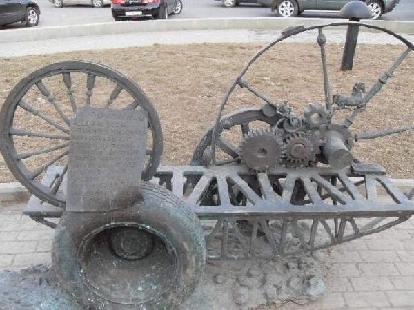 Скамейки эти — необычные: там и записи инженера, и инструменты — клин, рычаг, даже колесо.