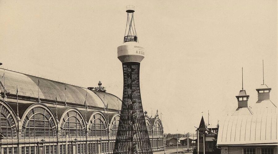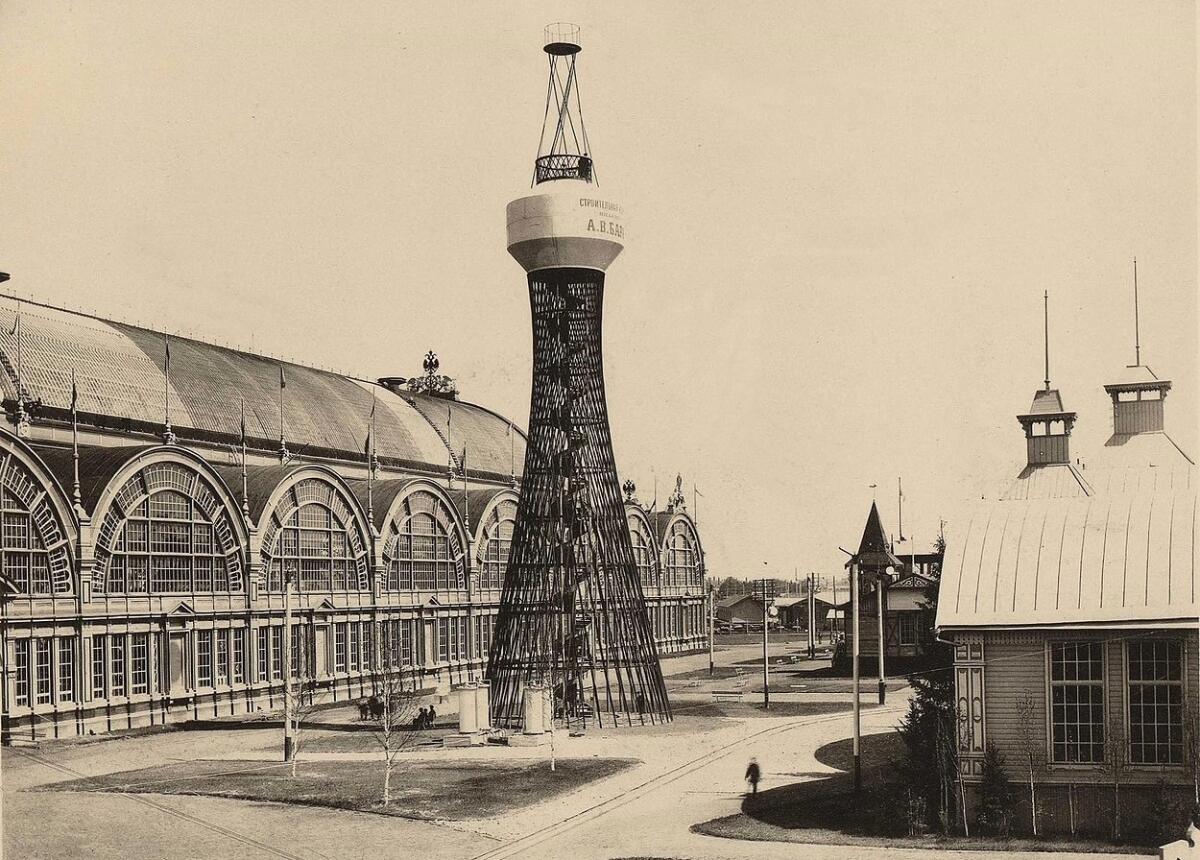 Первая в мире гиперболоидная башня Шухова, Нижний Новгород, фотография А. О. Карелина, 1896.
