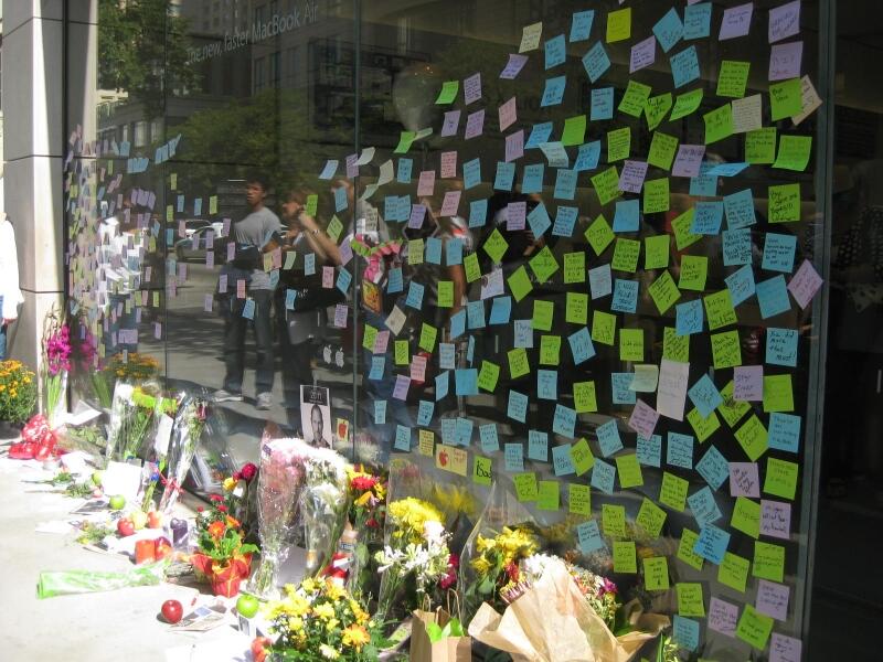 Редко когда бывает, чтобы уход из жизни одного человека объединяет людей на всей планете так, как это происходит сегодня. К тому же, уход такого человека: полностью закрытого от посторонних глаз, практически не появляющегося на публике, не мелькающего перед телекамерами. То, что мы наблюдаем в этот день — лучшее свидетельство того, кем был Стив Джобс для десятков миллионов людей на Земле. Этот человек пишет у дома Джобса в Пало Альто: «Steve, you made our lives easier».