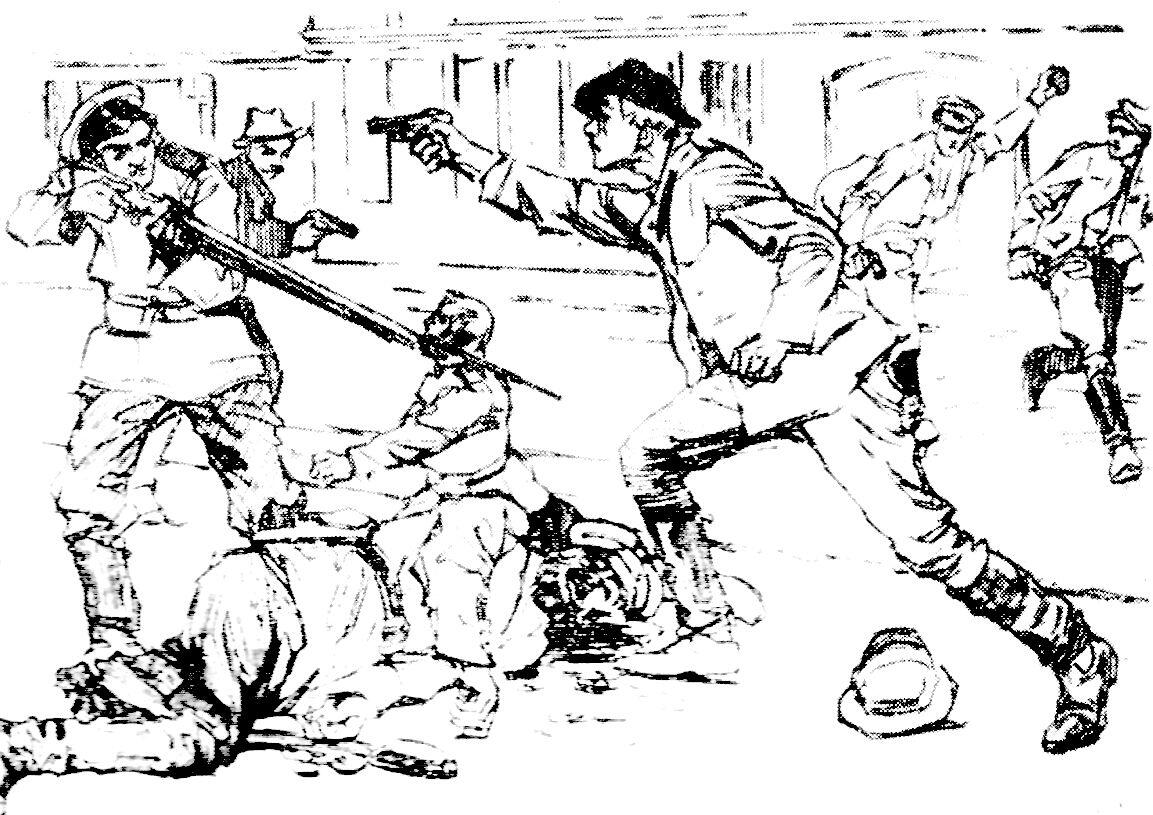 «Боевик стреляет в полицейского», рисунок из польской социалистической газеты Robotnik, 1907 г.