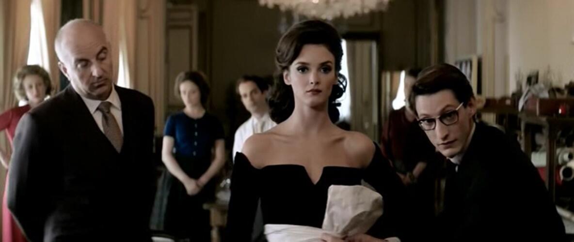 Возле огромного зеркала стоит хрупкая девушка, в длинном черном платье, которое бесстыдно обнажает ее немного угловатые плечи. Десяток модисток толпятся вокруг девушки, но Диору не нравится решительно все. И тут — занавес, свет! — появляется Ив. Кутюрье обращается к нему за помощью, протягивая рисунок на пожелтевшей бумаге: