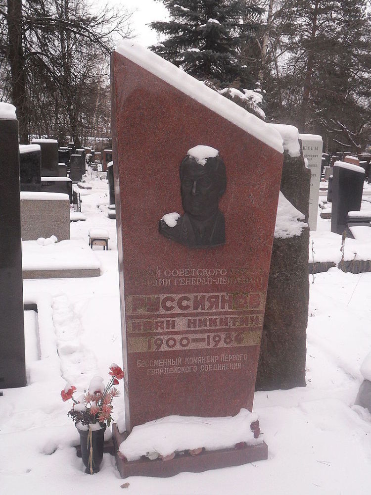 А в 1978 году о его славных делах вспомнили и присвоили ему звание Героя Советского Союза. Правда, после смерти похоронили его не на Новодевичьем кладбище, где были зарезервированы места для заслуженных генералов, а на Кунцевском. И памятник поставили более чем скромный — из обычного гранита, а не из черного габбро, какие стоят на генеральских могилах на Новодевичьем.