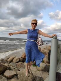 А думка моя примерно такая: не легко ли, Лена, вы по погоде одеты?!! Смотрю на свинцовые волны Балтики... И мне уже холодно. В теплой комнате!!