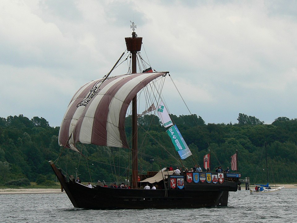 Гибель античных цивилизаций остановила и морскую торговлю. Много сот лет по морям ходили только «пенители моря», драккары, корабли цивилизации морских разбойников. Их до некоторой степени тоже можно назвать грузопассажирскими судами Средневековья: их задачей было довезти дружину викингов до чужих берегов, после сражения и ограбления селений и городов побежденного врага взять на борт все награбленное, вещи и рабов — и уплыть в родной фьорд хозяина драккара.