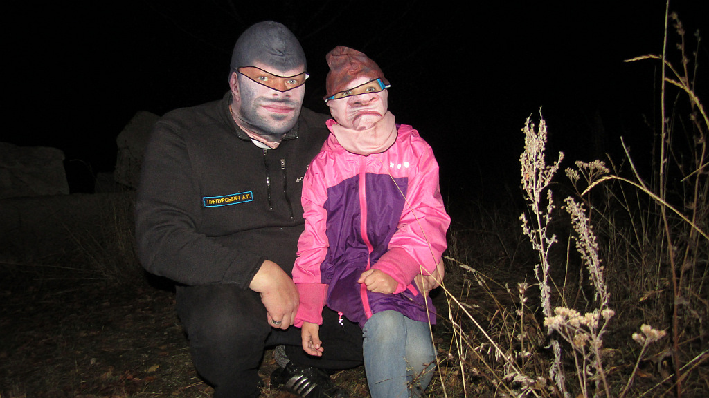 Маска с рисунком типа «хамелеон в городских джунглях», созданная на стыке высоких технологий и искусства с помощью принта человеческой головы, креативна, она удобна, но недостаточна из-за условно широких разрезов для области глаз и рта. Пример представлен на фото наголовной маски с принтом (автор с дочерью).