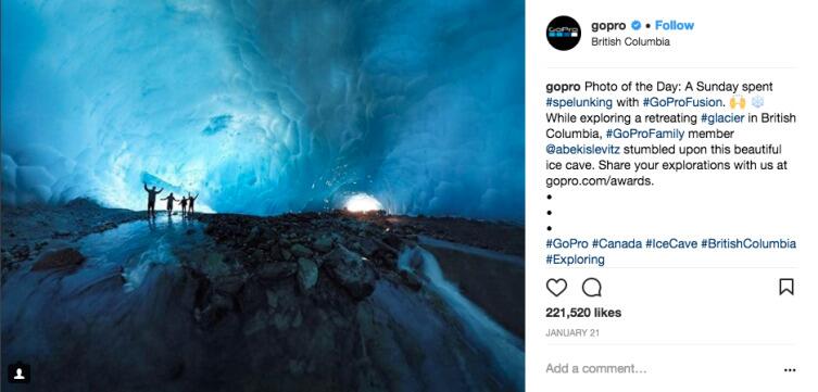 Сделайте фотографии и видео, которые показывают использование вашего товара или услуги. GoPro — хороший пример бренда, который делает все правильно: они публикуют снимки пользователей, сделанные с помощью их продукции. Это могут быть снимки товара, людей, использующих его, видео с экрана монитора, если вы предлагаете софт.