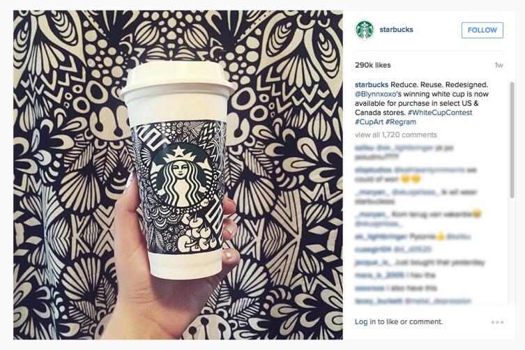 Попросите пользователей разработать для вас новый контент и опубликуйте победивший дизайн или текст. Бренд Starbucks часто просит пользователей придумать собственный дизайн чашек. А чашку-победитель потом можно купить в магазинах! Такой прием идеально подойдет, чтобы наладить отношения с клиентами, получить рекламу и охват.