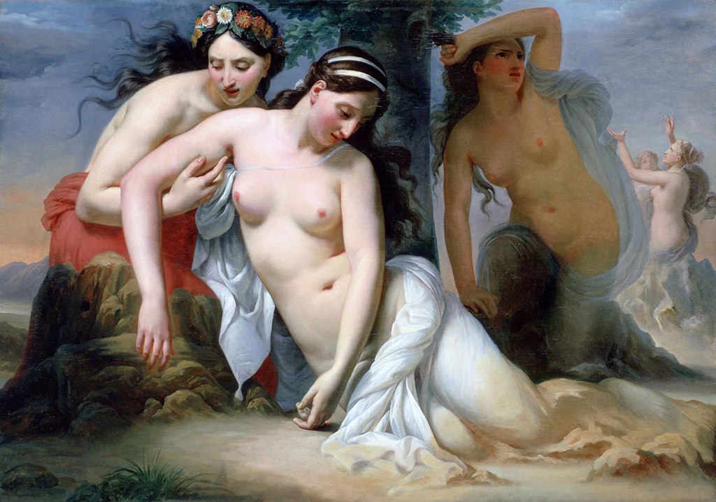 Овидий не говорит о том, сколько их было, поэтому художник взял на себя смелость изобразить пятерых. Естественно, что они полуобнаженные — как иначе показать красоту их тел (если бы они не были привлекательными, кто бы захотел платить за их услуги?).