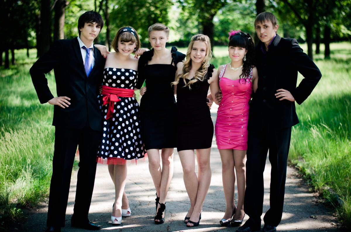 Выпускники старших классов отдают предпочтение эффектным вечерним нарядам, великолепно сидящим на их фигурах. В основном на выпускном балу устраивают танцы и веселые конкурсы, также могут выбрать короля и королеву вечера. Ими обычно становятся самые нарядные молодой человек и девушка. Девушки облачаются в наряды королев и придворных дам, блистая в шикарных образах. Большинство молодых людей приобретают классические костюмы, а наиболее смелые предпочитают наряды сказочных принцев и мушкетеров.