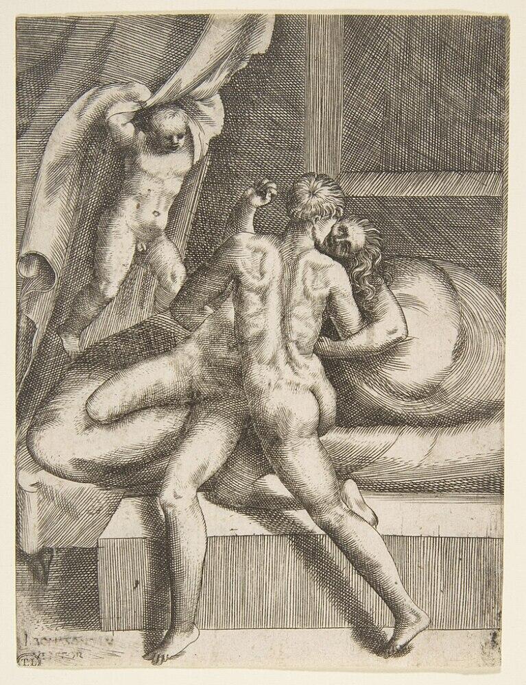 Итальянский художник и гравер Джулио Бонасоне (1498−1574 гг.), который жил и творил в Болонье, изобразил Аполлона в порыве любовной страсти, когда он силой берет Левкотою (о том, что она пытается сопротивляться, говорит положение ее правой руки, как бы отталкивающей Аполлона).