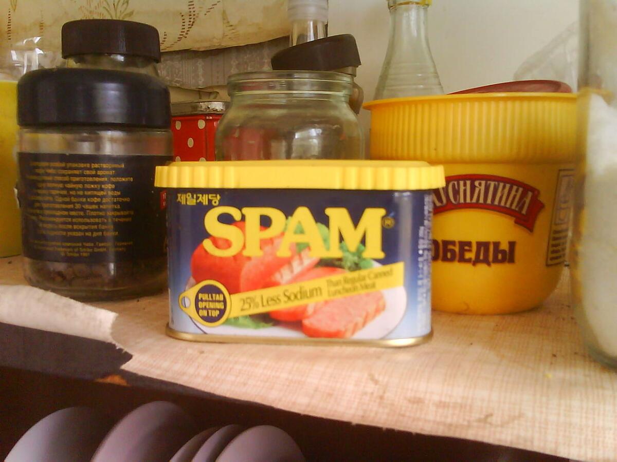 Слово «спам» (SPAM) появилось в 1937 году и означало тогда «острая ветчина» (Spiced ham) или «свиные лопатки и окорока» (Shoulder of pork and ham). Очень вкусные консервы были, их, спасибо Рузвельту, очень много отправили в СССР по ленд-лизу. Настолько много, что фронтовики этот спам даже называли «Вторым фронтом», предлагая на ужин в окопах открыть Второй фронт…