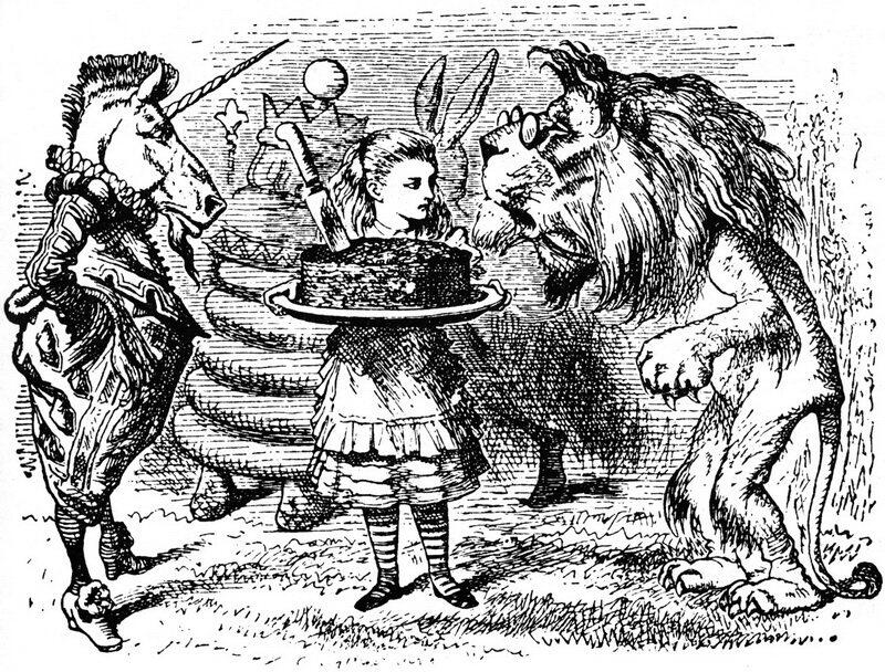 Возможно (возможно!), свою лепту в подобное видение «Алисы» внёс её иллюстратор Джон Тенниел — мастер политической карикатуры. Недаром его Лев и Единорог имеют заметное сходство с британскими политиками Гладстоном и Дизраэли, а Герцогиня явно срисована с крайне уродливой тирольской герцогини Маргариты.