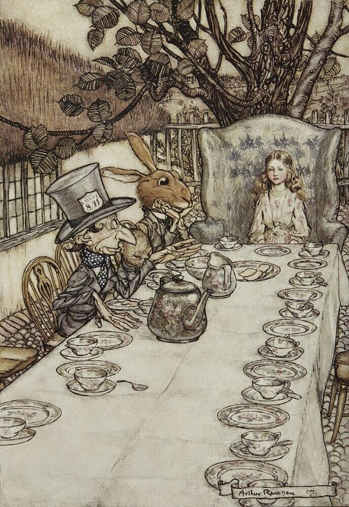 Каким образом данные факты доказывают, что «Алиса» — это социальная сатира, я так и не понял… Вместо того, чтобы «распутать» смысл сказки, Кацис мастерски его «запутывает». При этом у меня снова возникает вопрос: почему подобные исследователи не берут в оборот роман Кэрролла «Сильвия и Бруно», где автор действительно местами размышляет о социальном устройстве? Может, потому, что он не столь популярен и удачен в художественном плане?