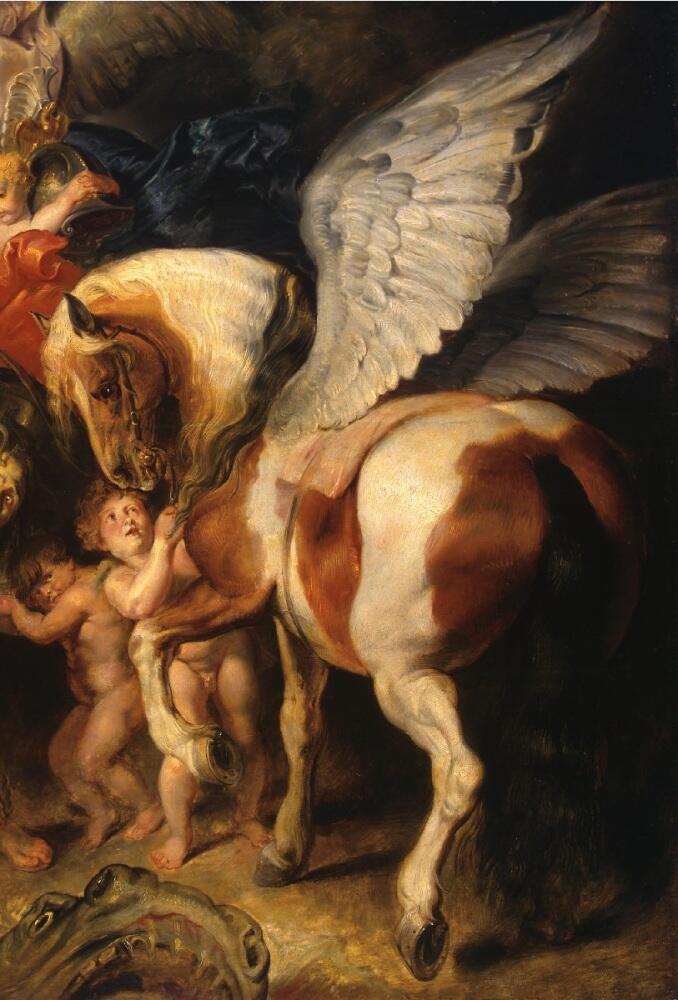 Как бы случайно, Афина сообщает, что: «Я зрила, как сам он из крови возник материнской», — это относится к появлению на свет коня Персея (он возник из крови Горгоны Медузы, когда Персей отрубил ей голову).