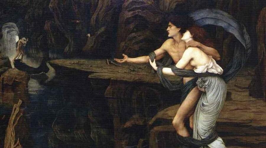 И, не страшась, за собой созерцает Орфей Эвридику.