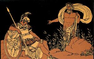 Эней спас уцелевших в войне троянцев: посадил на свои корабли и привез их на Сицилию. На Сицилии он хотел спуститься в подземное царство и повстречаться там с тенью отца, поговорить с ним и услышать пророчество о своем будущем. На обратном пути ветры занесли корабли Энея на один из островов Неаполитанского залива, где жили керкопы.